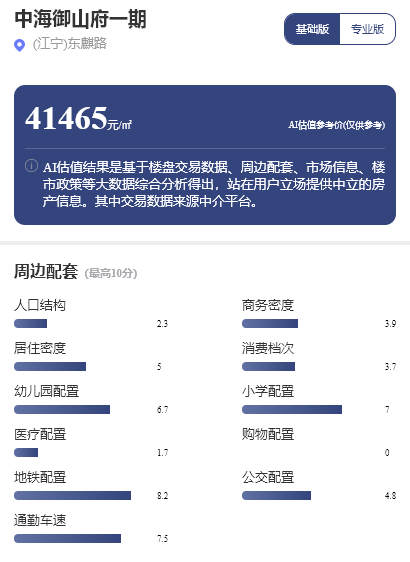 從周邊配套看,中海御山府的地鐵配置、通勤車速和小學(xué)配置的得分分別為8.2分、7.5分和7.0分。項(xiàng)目周邊擁有2個(gè)地鐵站,分別為北灣營(yíng)地鐵站和麒麟公園地鐵站,優(yōu)于江寧區(qū)82%的住宅小區(qū),屬于地鐵出行相對(duì)舒適的區(qū)域。早晚平均通勤車速為28.25公里/小時(shí),高于江寧區(qū)75%的住宅項(xiàng)目,相對(duì)屬于駕車出行舒適度中的區(qū)域。